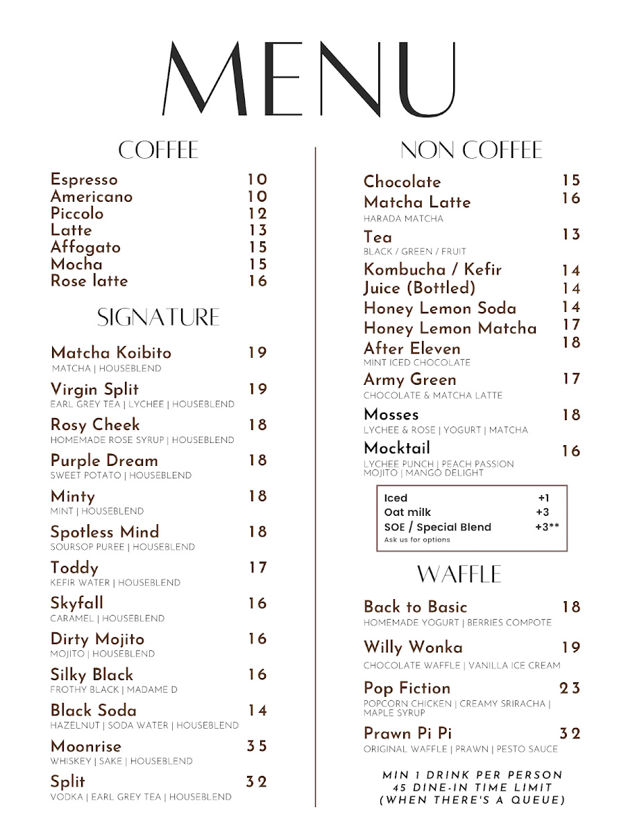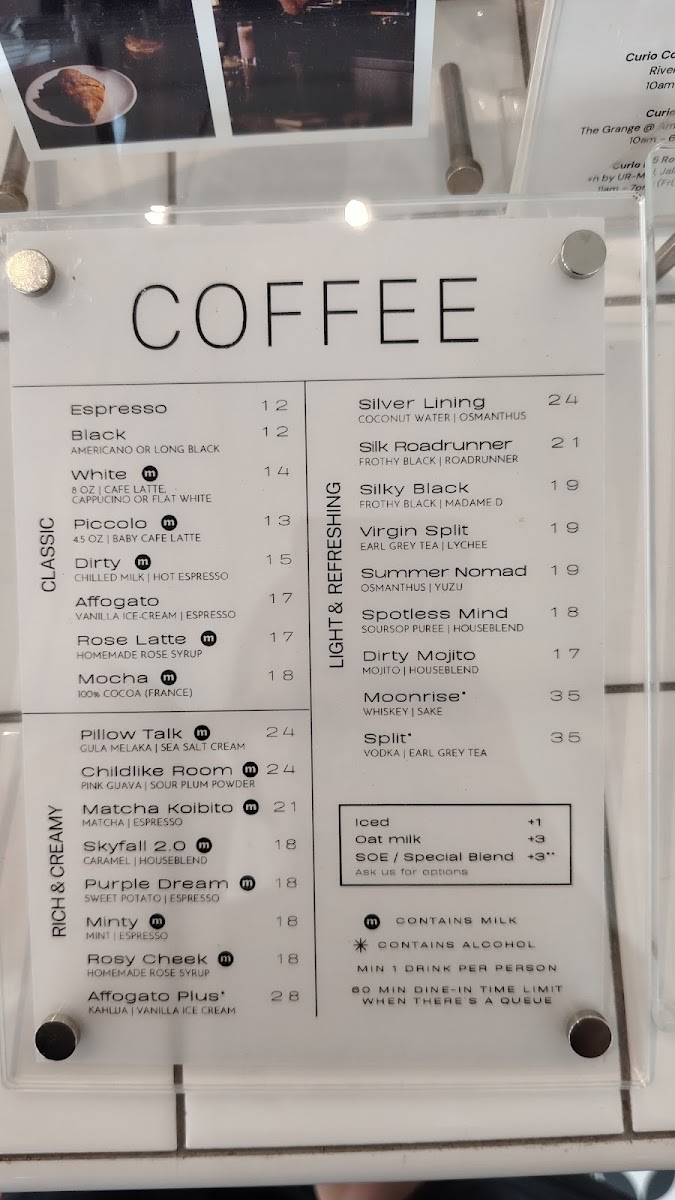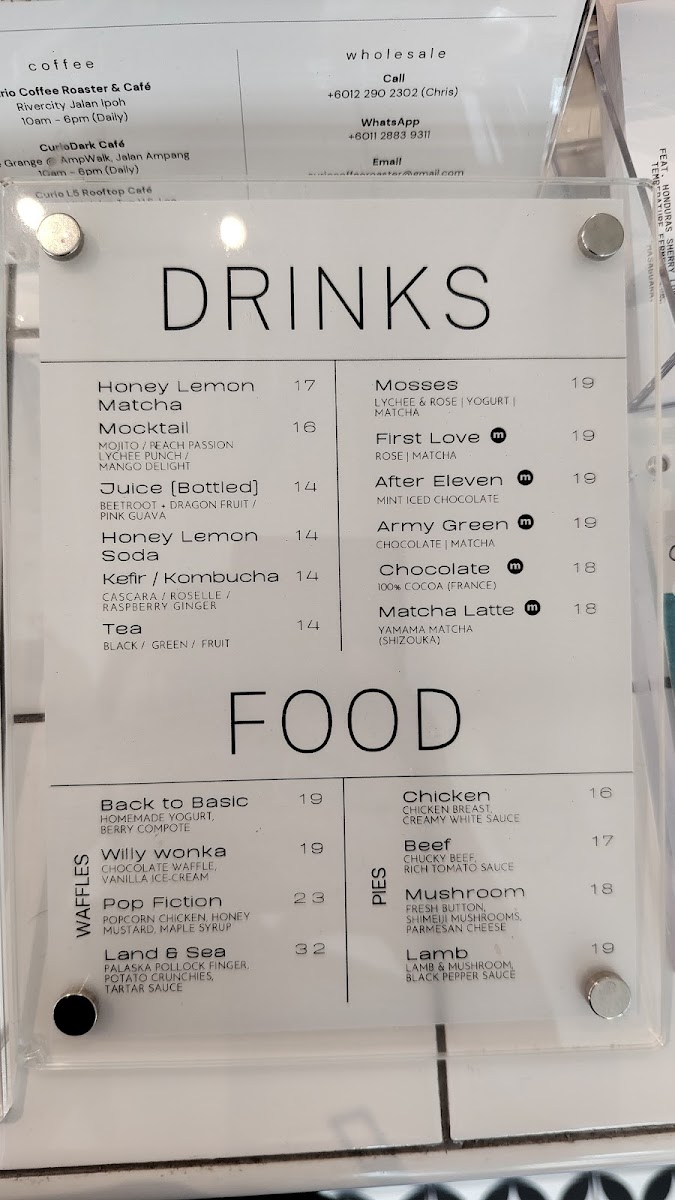 Curio Coffee Roaster & Cafe @ Jalan Ipoh Menu